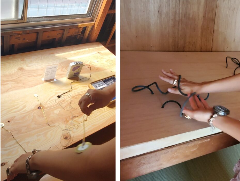 左:Anthro Scope触れるモノの音を録音することできる。 右:The Parasitic Animacy黒いロープの様なモノが不規則な動きをする