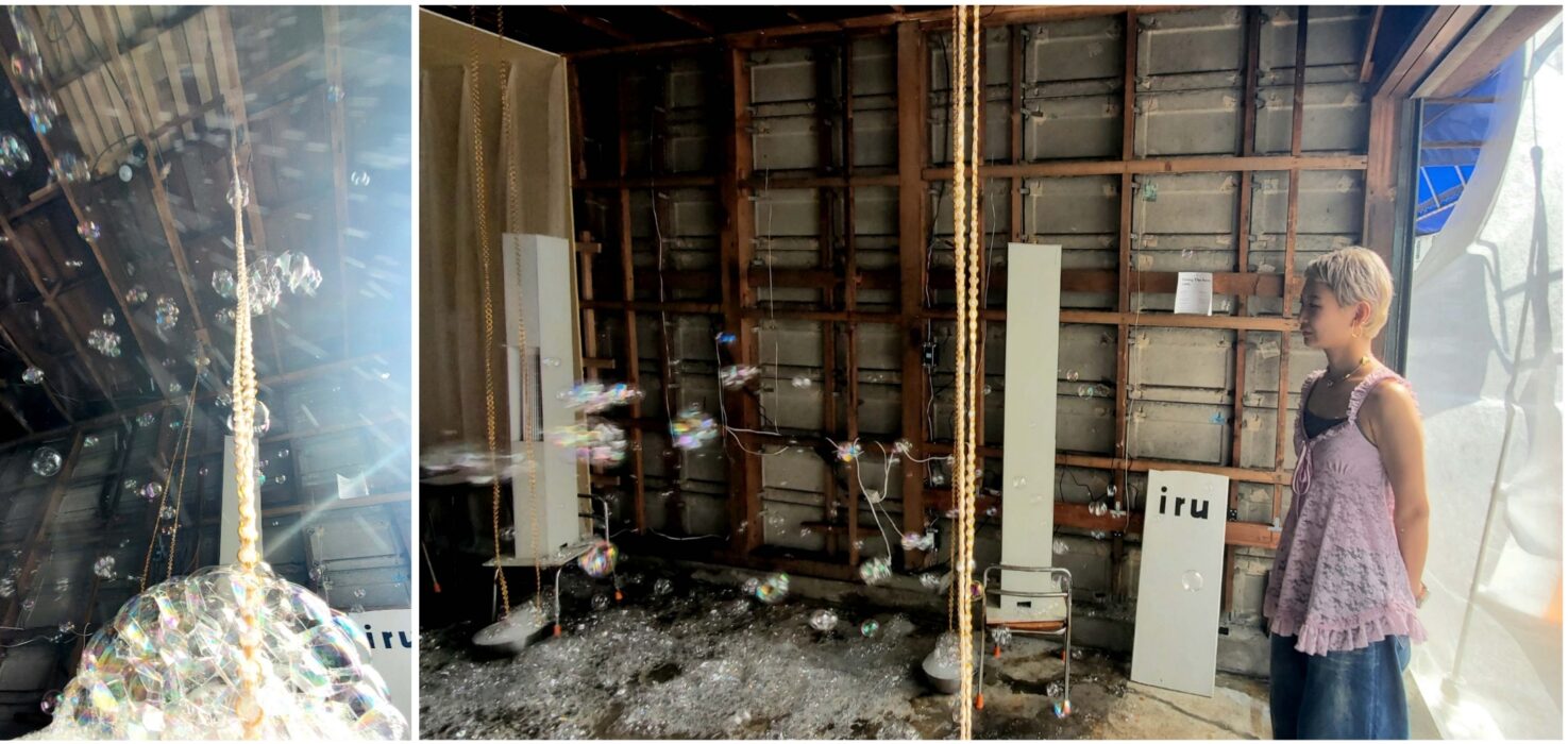 Washing the Secrets, Gentlyイワシの大群のようにシャボン玉を回遊させた。自分で息を吹きかけられるチェーンもある