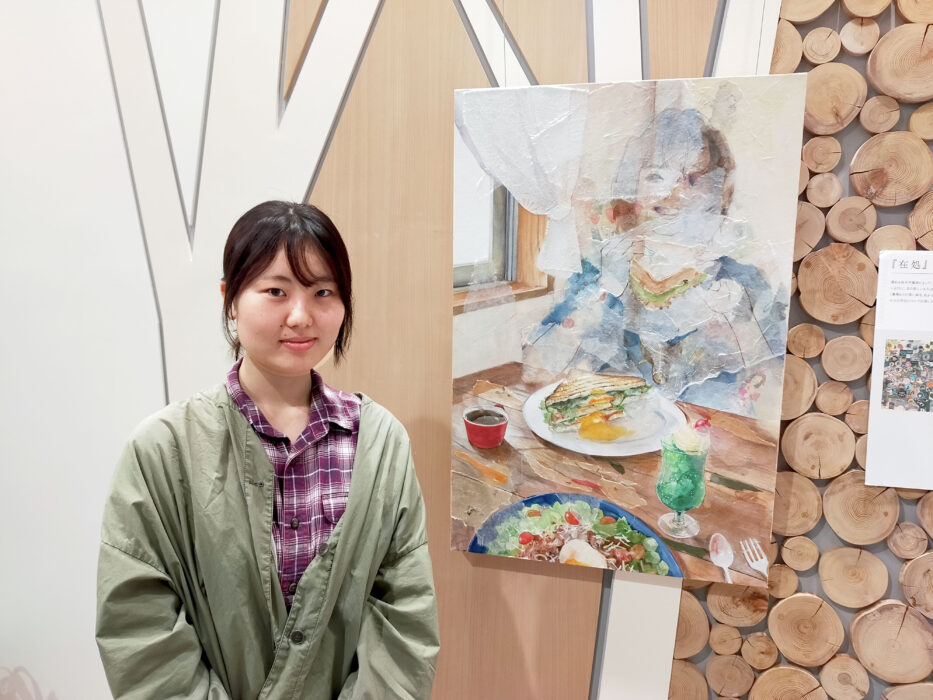 【作品について】「作品のテーマは、“家族の食卓”。一人暮らしを始めた頃の寂しさから生まれました。モチーフのスープは、フランス映画の中で親子が食べていたスープを自分なりに想像して描きました」。