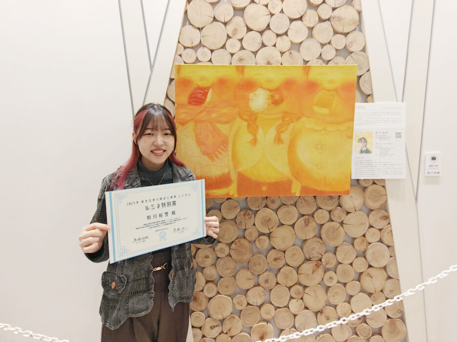 「まさか賞を頂けるとは思っていませんでした。ルミネ特別賞は今年から創設されたとお聞きしていますが、選んでもらって嬉しい気持ちです。ルミネ立川でのアートワークショップに向けて、取り組んでいきたいです」。