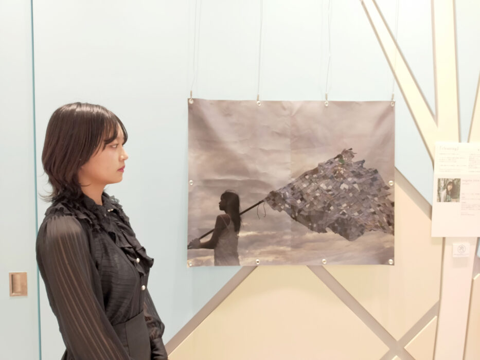 「嬉しいです。美大生にこの様な機会を作ってくれたことに感謝します。商業施設の様な大きな場所で来場者に観てもらえたことや、次回、ギャラリー国立で展示できることも嬉しく思っています」。