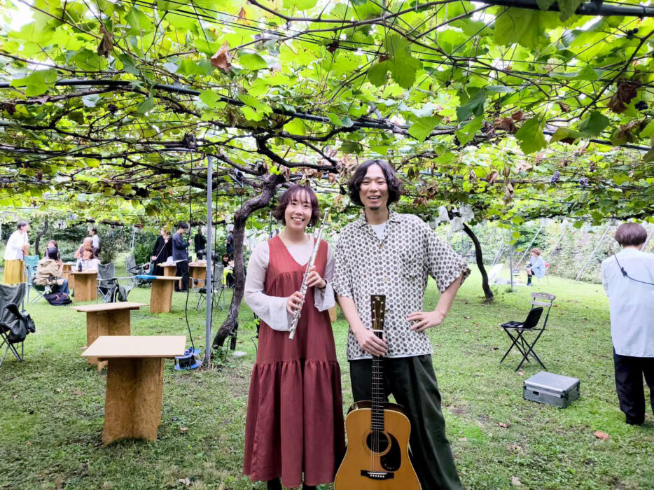 段々と日が沈み、薄暗くなったぶどう畑に三輪さんと吉本さんの音楽がしっとりと響く。