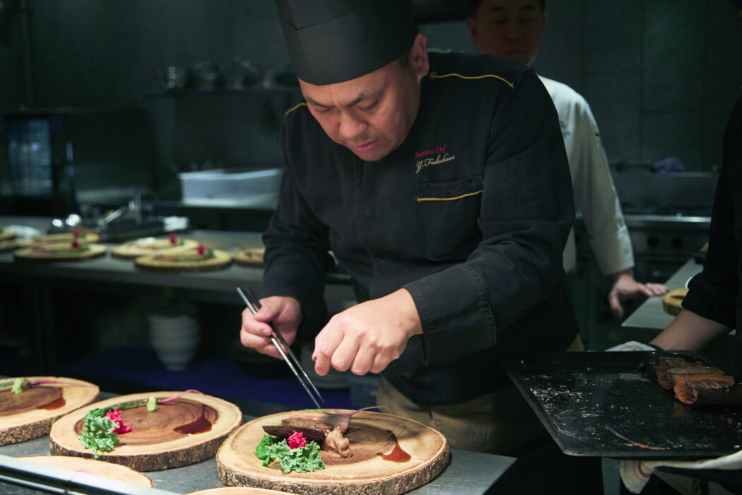 「SORANO HOTEL」福原義昭総料理長は、食材に込められた生産者の仕事を一皿の中に表現したいと話した。「料理を始めてから、食材の重要性を意識し始めたのは前職である北海道の「吉兆 洞爺湖店」で働いていたとき。農家さんの作った豚汁を食べた時、食材の存在感に驚かされました。ジャガイモやごぼうなど、その土地で採れたものを食べることの価値に気づきました」。