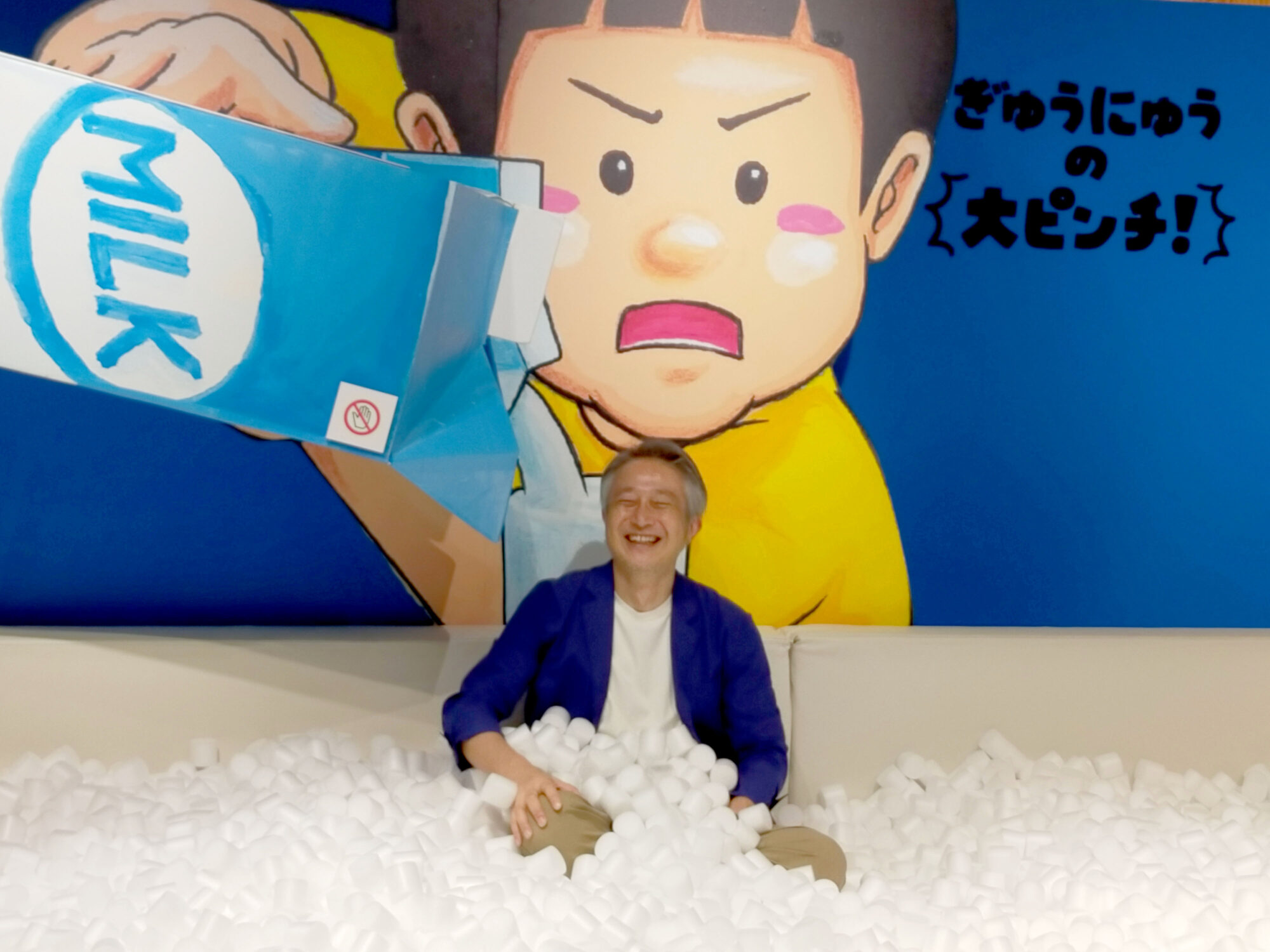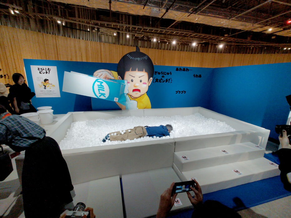 4つ目は、「とびこむピンチ!」。男の子が牛乳をこぼしたシーンを立体化したコーナー。